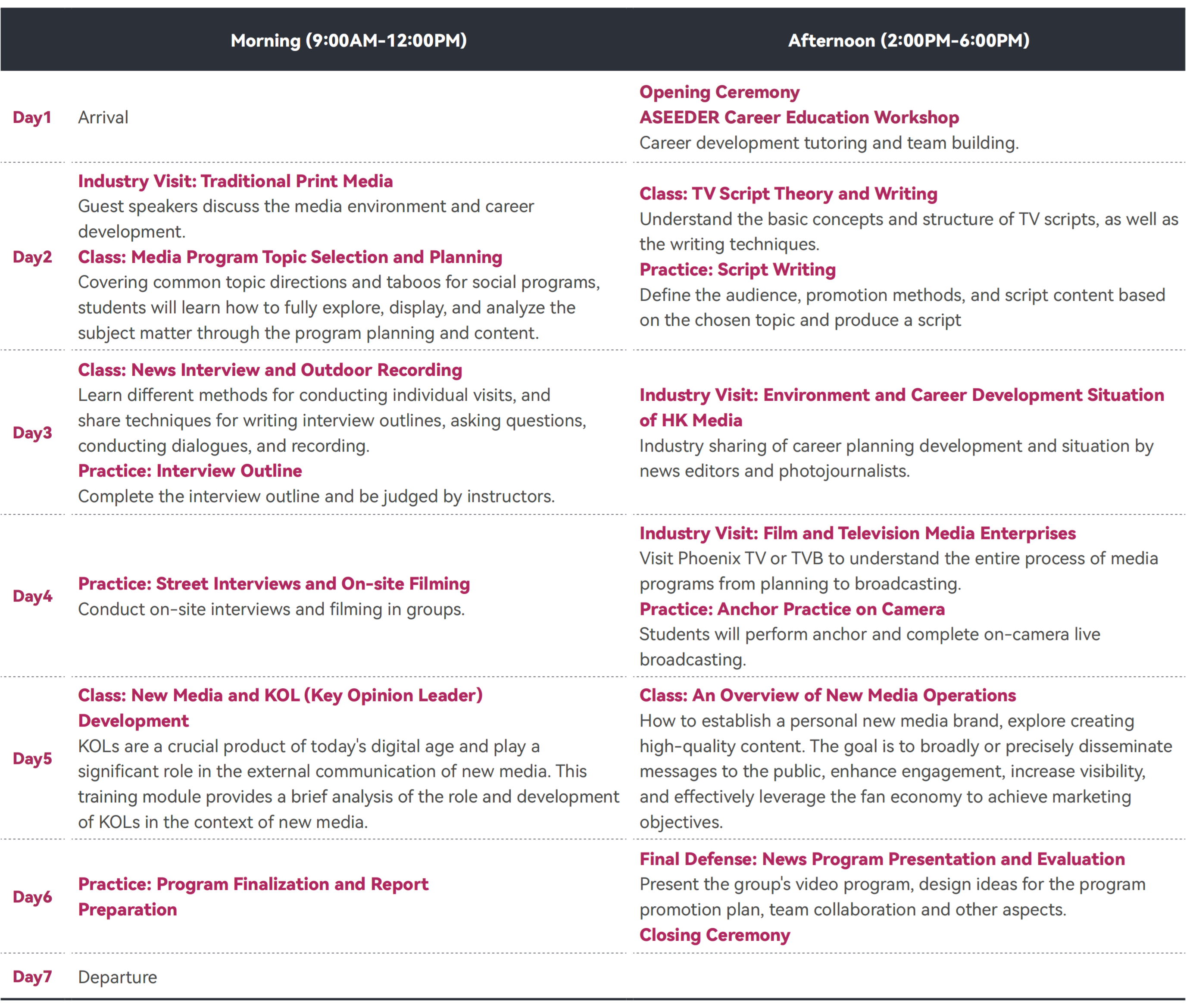 China Daily is China's national English-language newspaper, founded in 1981. It serves as an important window for China to understand the world and for the world to understand China. It is currently the most widely-referenced Chinese newspaper by foreign language. ASDAN China, in collaboration with China Daily, offers a media practical program tailored for high school students. The program is conducted at the China Daily Hong Kong office, providing a comprehensive and multidimensional enhancement of students' professional capabilities. Students will gain hands-on experience in all aspects of the media process, including topic planning, scriptwriting, interviewing, filming, recording, editing, and new media promotion. Additionally, students will have the opportunity to visits to prominent Chinese-language television giants such as Phoenix TV or TVB.