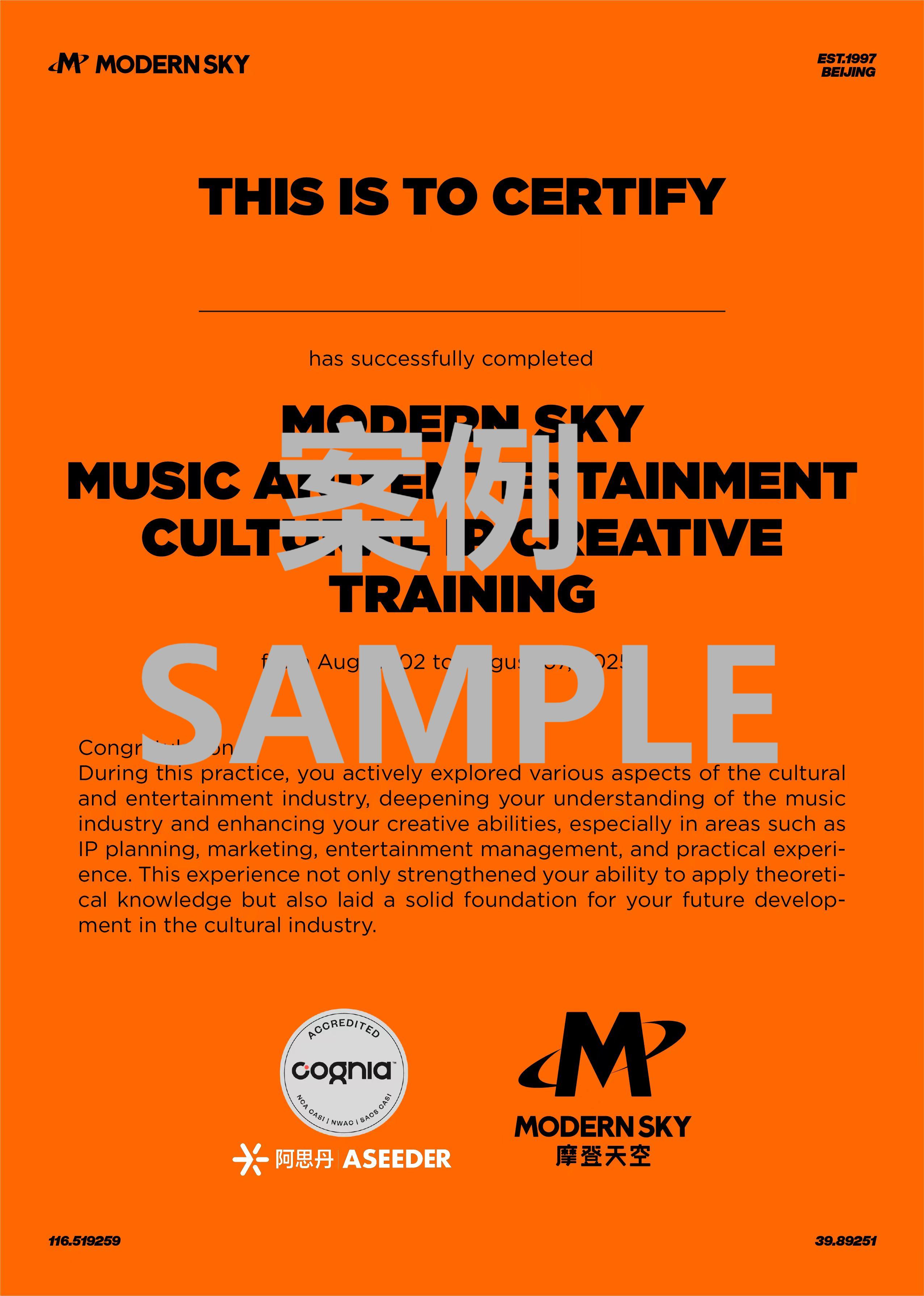 创立于 1997 年的摩登天空,是中国领先的原创音乐唱片公司和青年文化娱乐品牌,旗下签约音乐人 160 余组,拥有 6000 余首中国原创音乐版权库,并创办了“草莓音乐节”、“MSDK 音乐节”等多个音乐节品牌。摩登天空不仅在音乐出版、艺人经纪、现场演出等领域占有重要地位,还涉及音乐场地、录音制作、传媒、视觉艺术、产品设计等多个文化创意产业版块,摩登天空以独立审美与前瞻性视野,是一个成功将独立审美体系转化为庞大商业价值的文化 IP 运营典范,也极大地推动了中国原创音乐和青年文化的蓬勃发展。 阿思丹与摩登天空联合独家推出摩登天空文化 IP 运营与艺术商业化,依托其横跨音乐出版、视觉设计、大型现场活动、跨界合作及衍生品开发的全产业链生态,揭示一个文化企业如何从零开始,构建品牌、运营 IP 并实现艺术价值的商业化跨越。课程从文化厂牌的创立和运作,到 IP 的塑造与跨界合作,进一步探讨艺术商业化的多重内容,包含潮流艺术、品牌联名等营销议题,帮助学生深入了解并参与现代文化创意产业的各个环节,完成从创意到产业的深度赋能,收获稀缺的一线文化行业实践体验。完成课程的学生将获得摩登天空签发的项目参与证明,以及 UCAS 官方推荐的阿思丹“职业发展与生涯能力规划”证书。